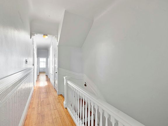 There is a split bathroom (tub/shower and sink in one room and toilet/sink in room across the hall). The shower and bathroom floor have new tile. There is antique lighting throughout the flat, central heat and a rear concrete patio with bike parking that is shared with the two other flats.