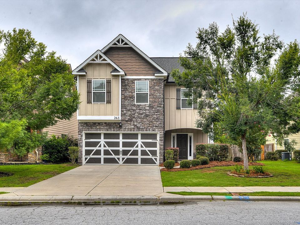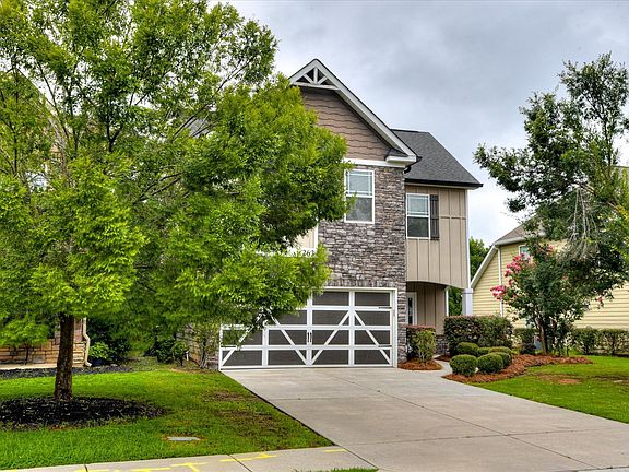 This 4 bedroom, 2.5 bath, energy efficient home offers an open floor plan on the main level, with hardwood floors, spacious great room, gas fireplace, granite countertops in the kitchen, and dining area with custom molding. The large master suite is upstairs and features a walk-in closet, bathroom with double sinks, glass front shower and garden tub. Three additional bedrooms upstairs have vaulted ceilings and great closet space. The upstairs bathroom features granite countertops and double sinks; laundry room and attic storage complete the upstairs. Additional features of this home are 2 car-garage, covered back patio with an outdoor fireplace, and a fenced backyard. Neighborhood amenities include sidewalks, pavilion, pool, tennis courts, and playground, Pets allowed with owner approval and pet fee, no cats allowed. Verify schools directly with Columbia County Public Schools. Call today to schedule a tour!