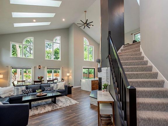 Discover luxury living in this epic 3-bed, 3-bath, 3,900 sq ft home, meticulously remodeled, and on a private 0.57-acre lot in Birchwood Village. Lake living without the taxes: Association DEEDED DOCK ACCESS to White Bear Lake! Access to 5 private beaches and kayak racks. Family friendly neighborhood with parks, an ice rink, and pickleball/tennis courts. This move-in-ready gem boasts a 2023 roof, new AC coil, hot water heater, air exchanger, plus advanced Wi-Fi and sound system. Revel in four fireplaces, 23-ft vaulted ceilings with skylights, and a cedar sunroom with a semi-transparent roof. The chef's kitchen features Cambria quartz countertops, a double oven with 6-burner/griddle range, drawer microwave, and oversized island with beverage fridge. Entertain in the theater room with surround sound, relax in the sauna, or unwind in the spa-like primary suite with a Jacuzzi tub, fully tiled shower, and his & her walk-in closets. Additional highlights include a basement bar with restaurant booth and commercial-size wine fridge, heated garage with EV charger, huge fenced backyard with patio, and a pool table included. Steps from lake amenities, this is your dream home in a phenomenal neighborhood!