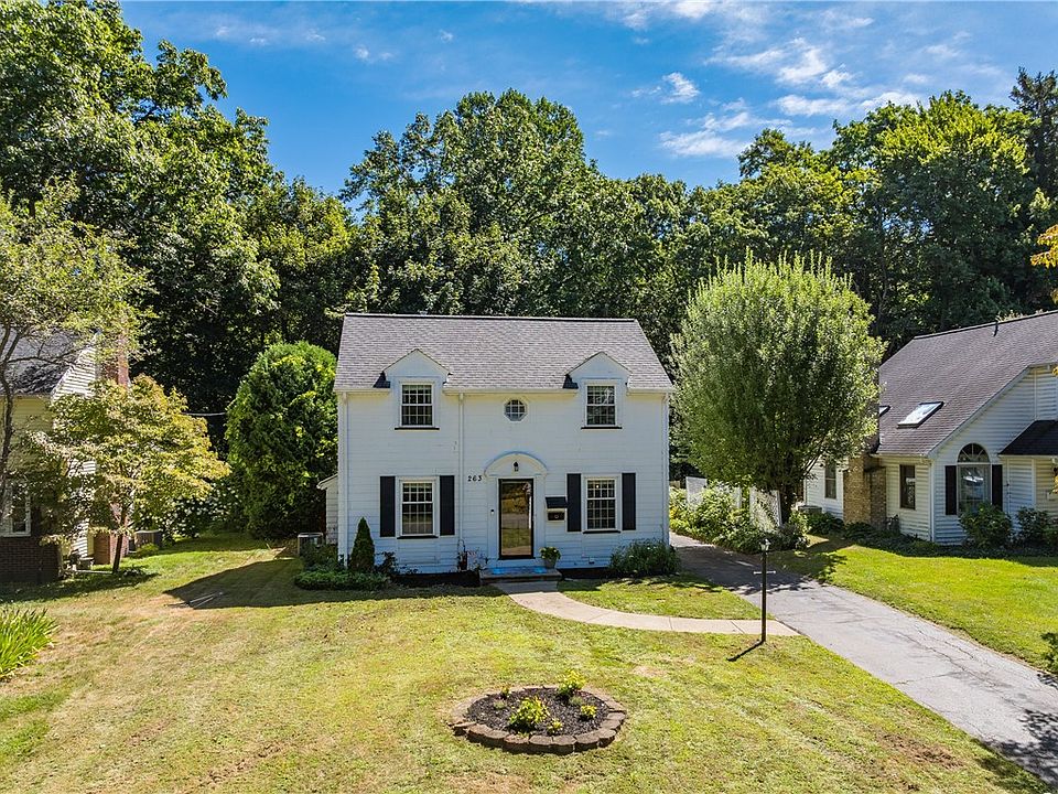 LOCATION LOCATION-Excellent area located on a cul-des-sac with so much, just a short walk away: Indian Landing Elementary, Tree Town Cafe, Corbett's Glen Nature Park, Ellison Park, easy quick 10 min. commute to the City and all expressways right there!! Beautifully maintained and updated 3-bedroom home! Nestled on a desirable cul-de-sac and backing to private wooded views, this property is move-in ready with today’s colors and style. The welcoming foyer with charming arch doorways leads to a spacious living room featuring a wood-burning fireplace. The updated open layout kitchen offers white cabinetry, stainless steel appliances, farmhouse sink, breakfast seating, pendant lighting and a dining area. Upstairs, you’ll find 3 generously sized bedrooms with hardwood floors and a bright full bath with white tile and tub/shower. Additional features include a basement for storage and laundry center, and a relaxing enclosed porch overlooking the fenced backyard with beautiful landscaping and privacy. Professional landscaped lot features walk way and patio area for enjoying the season and a kid friendly playset! This home offers a perfect blend of comfort and style—ready for you to call home!