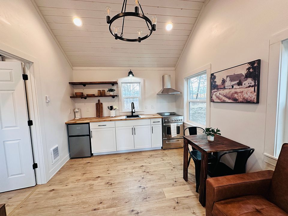 New one bedroom, one bath home with Mountain View's. Right by highway for easy access. Hardwood floors, butcher block counters, lots of parking, large yard. Pets negotiable.