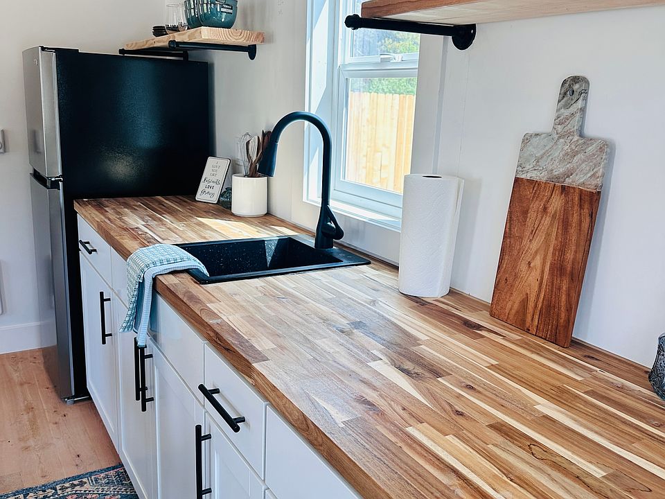 New one bedroom, one bath home with Mountain View's. Right by highway for easy access. Hardwood floors, butcher block counters, lots of parking, large yard.