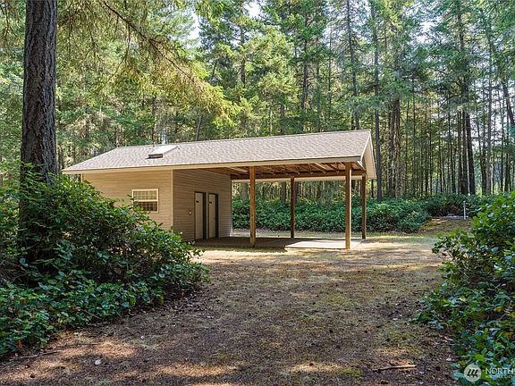 Bring your RV, tent or building plans to this lightly wooded 10 acres that has it all---good drilled well at 6gpm, installed 4 bedroom septic system and power plus a nearly 400 square foot carport which is backed by 2 three-quarter baths with skylights, mechanical/water room and laundry room. Everything you need to make you comfy while you enjoy your own personal campground or with a little work make it a cabin. In the spring you will find a couple of wild rhodies in the woods. Undeveloped beach access too. Close to all your favorite southend spots on Lopez.