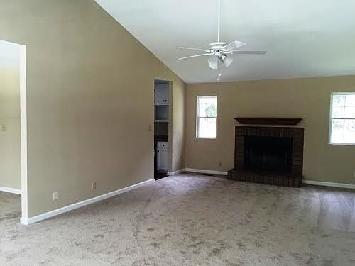 Country front porch welcomes you home to this spacious 3 BR/2BA home on 1.74 acres! Living room with vaulted ceiling and brick fireplace! Kitchen is bright and cheery with plenty of cabinets, counter space and eat-in area! Large master bedroom with bathroom that has walk-in closet and jetted tub! Formal dining room and second living area which leads out to back deck and large back yard!