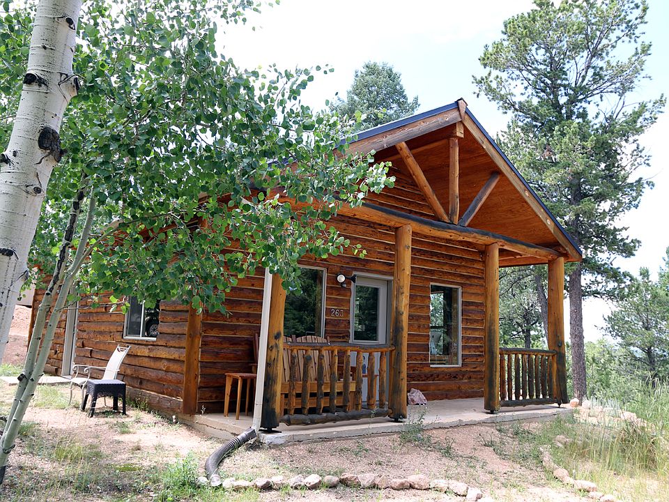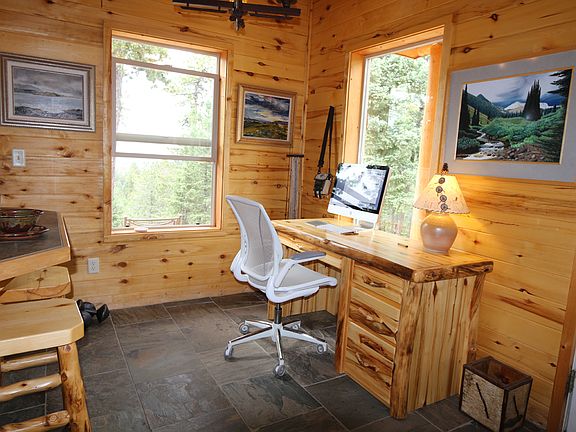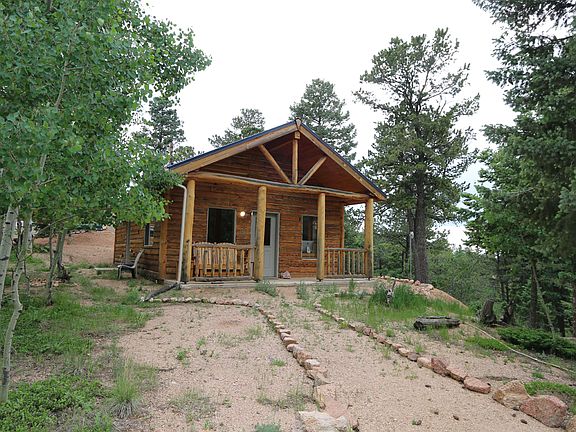 Log cabin nestled in the woods with views of 2 Fourteeners! Property has aspen groves & conifers & is a mitigated property. This charming home has a covered porch, slate floors, tongue and groove wood. Light & bright, there are lots of windows & vaulted ceilings. Breakfast bar in the kitchen, dining area and separate master bedroom w/ full bath & walk-in closet with laundry hookup. Storage shed, flat patio area overlooking views and great location - just outside Woodland Park, near Charis, the hospital & downtown Woodland. This cabin is nicely maintained and has access year round on county and neighborhood private roads. A quick drive to prime hiking, fishing, and ATVing and downhill skiing is only about 1.5 hrs away. Half an hour to Co Springs area, less than an hour to Co Springs Airport. Water for cistern is about $3/week and can be delivered automatically.