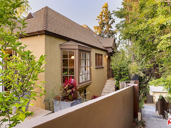 Nestled atop Mt. Angelus in one of Highland Park's most sought-after locations, this exceptional street-to-street home sits along one of Los Angeles' historic walks. Blending artistic character with architectural heritage, it offers a rare street-level entry on the main floor and convenient access to a two-car garage from below, an uncommon combination that provides both ease and privacy on the hillside. Built in 1925, the residence embodies the romantic soul of early Southern California design - arched ceilings, rich wood floors, and hand-crafted details - beautifully balanced by more modern updates that make everyday living effortless. This is a home where historic preservation meets thoughtful innovation, resulting in something truly enchanting. Step through the front door and be greeted by sweeping views of the San Gabriel Mountains, the Mt. Wilson Observatory, spectacular Rose Bowl fireworks, and on crystal-clear days, the majestic Mt. Baldy. The barrel-vaulted formal living room sets a dramatic yet inviting tone, filled with natural light and endless sky. Every room unfolds with purpose - a dining room with a tree house-inspired feel, a chef's kitchen, and a sitting room connect seamlessly to the garden terrace, inviting gatherings that flow from indoors to outdoors. For those who love to cook and entertain, the kitchen is ideal, featuring a large center island with a cooktop, double ovens, a walk-in pantry, and abundant storage. Whether you're hosting a dinner party under candlelight, enjoying a barbecue, or savoring a quiet evening, this home adapts to every mood and moment. Upstairs, two spacious secondary bedrooms provide versatility for guests, work, or creative pursuits. The lower level unfolds as an expansive private sanctuary, thoughtfully transformed into a primary suite that could easily serve as an ADU or "in-law" apartment offering potential rental income. With its own interior and exterior entrances, dual walk-in closets (one with a private half bath), and a spa-like en-suite bath with an infinity soaking tub, it offers both versatility and indulgent comfort - framed by serene views that invite pure relaxation. Thoughtful updates enhance peace of mind, including a gated entry, cellular alarm system, a 16-channel camera network, newer electrical wiring, an electric car charging port, tankless water heater, seismic retrofitting, and a newer air conditioning system. This hillside enclave offers unrivaled access to Figueroa & York, the Metro Line, numerous dining hotspots, happening bars, great coffee hangs, shopping, and artistic explorations that continually redefine Highland Park as the place to live. Other nearby amenities include Arroyo Dog Park, the scenic hiking trails in Ernest Debs Park, Dodger Stadium, and other iconic Southern California attractions. If it's possible to live car-free in L.A., this is the place to do it - your perfect sweet spot!