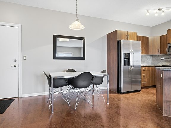 Updated condominiumImmaculate kitchenRich espresso cabinetryGranite countertopsSleek stainless steel appliancesOpen layoutCork flooring