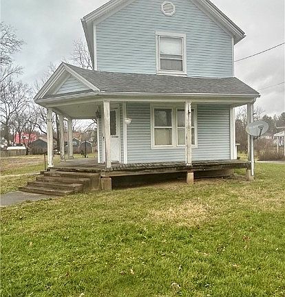 If you are looking for a property that you can rehab, then this is the one for you! Perfect opportunity to make it your own! Also, would be great for an investor. This home is located on a large lot near the park. Located on a no outlet street with easy access to Main Street. The family room has a beautiful woodburning fireplace that could be a 3rd bedroom as it has a closet. Just off of this room is a living room that could also be used as a dining room. Upstairs the primary bedroom has double closets. The second bedroom has a walk-in closet and attic space for additional storage. Basement access off the laundry room. Porch that wraps around the side and front and an enclosed back porch. This home has a lot of potential but will be sold strictly "as is". Schedule your showing TODAY! Bring Offer - Seller wants SOLD!!
