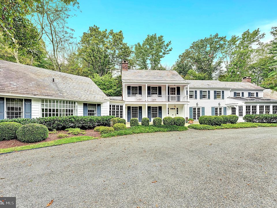 Welcome to this picturesque Princetonian estate located in the northern section of Princeton, New Jersey. This home is situated on almost 4 acres of land with private pond, elevated detached garage, wooded trails, and mature landscaping. The exterior esthetic is that of a historic Mercer County estate featuring slate tile roof, wood panel siding, natural stone, front balcony area, and 3 stories of well organized living space. With almost 4,700 finished square feet, this home is ideal for multi-generational living or accommodating larger families. The entire west wing of the property is a main level master suite with separate sitting room, dedicated office with built in shelving, spacious bedroom, walk-in closet, and full en-suite bathroom. The main level also provides a half bathroom, formal dining room, eat-in kitchen with full wall of windows, first floor laundry, large pantry, and a 2-story main living space. To access the second level, there are 2 sets of stairs, along with a fully-functioning elevator. The second floor features the second master suite with ample closet space and full bathroom, along with 2 additional bedrooms, a shared bathroom, and access to both the garage space, and the front balcony sitting area. The third floor has an additional bedroom/den with its own full bathroom. The garage has 3 separate bays and access to its own bonus storage space. The property has plenty of parking for larger gatherings and several outdoor spaces for dining, entertaining, pets, and play areas. There is even a private trail leading to the property's pond which borders the Pretty Brook Tennis Club. Ease-of-maintenance with updated utilities, public water/sewer, and well-maintained grounds. Take full advantage of the highly rated Princeton schools, the exciting downtown shops/eateries, and easy access to the beaches and major cities around Central New Jersey. Explore the home virtually via the 3D tour link!