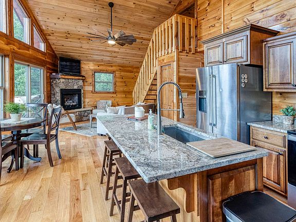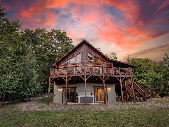 Fully furnished successful short term rental with Mountain views and situated on just over 1.5 acres this home is nestled deep in the Blue Ridge mountains, but yet near all the area conveniences and attractions. Stargaze from the hot tub and enjoy the peace and tranquility that could only be found here! The main living area features a wonderful family room/dining & kitchen open concept so entertaining and spending quality time with family & friends is effortless. The kitchen boasts quality stainless appliances, a large island for food prep and casual meals. The masonry fireplace provides warmth and a cozy atmosphere. There are two very spacious bedrooms on the main level as well as two full bathrooms. The laundry room also completes the main level of the home. Upstairs is an adorable & unique loft/bedroom offering those amazing mountain views. The lower level boasts an inlaw suite type space, with room for another bed(s), kitchenette and small dining area, all with access to the back covered patio area. There is another full bathroom on the lower level too! You will really enjoy the outdoor entertainment options as well. From the large covered decks with views of the mountains and sunsets, to the outdoor sitting area, firepit area and large grassy lawn area perfect for outdoor games. The community boasts a great pond area and firepit. Property is currently a successful short term rental property. Whether used as a private residence or a vacation rental, this property offers o