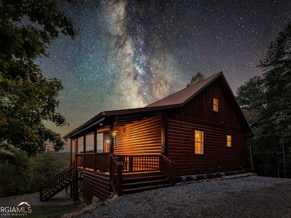 Fully furnished successful short term rental with Mountain views and situated on just over 1.5 acres this home is nestled deep in the Blue Ridge mountains, but yet near all the area conveniences and attractions. Stargaze from the hot tub and enjoy the peace and tranquility that could only be found here! The main living area features a wonderful family room/dining & kitchen open concept so entertaining and spending quality time with family & friends is effortless. The kitchen boasts quality stainless appliances, a large island for food prep and casual meals. The masonry fireplace provides warmth and a cozy atmosphere. There are two very spacious bedrooms on the main level as well as two full bathrooms. The laundry room also completes the main level of the home. Upstairs is an adorable & unique loft/bedroom offering those amazing mountain views. The lower level boasts an inlaw suite type space, with room for another bed(s), kitchenette and small dining area, all with access to the back covered patio area. There is another full bathroom on the lower level too! You will really enjoy the outdoor entertainment options as well. From the large covered decks with views of the mountains and sunsets, to the outdoor sitting area, firepit area and large grassy lawn area perfect for outdoor games. The community boasts a great pond area and firepit. Property is currently a successful short term rental property. Whether used as a private residence or a vacation rental, this property offers owners and renters a FABULOUS opportunity to relax and enjoy the GOOD LIFE!