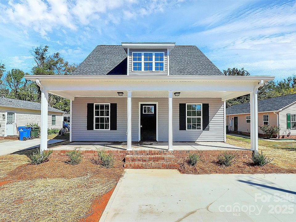 Covered front porchStunning kitchenSplit bedroom planBreakfast barHuge kitchen islandOpen floorplanDining area