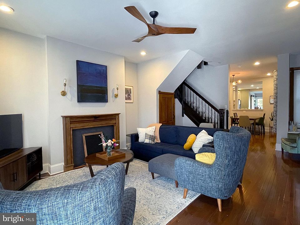 SUNDAY OPEN HOUSE CANCELLED. Welcome to your charming, move-in ready oasis in the heart of Wissahickon! This beautifully renovated Victorian row home seamlessly blends the timeless charm of a pre-war residence with the convenience of modern living and amenities. Nestled on a tranquil street adjacent to the iconic Wissahickon Trail of Fairmount Park, this great location offers an unparalleled blend of urban convenience and serene outdoor escapes. Approaching the home, you're greeted by lush, low-maintenance landscaping and an inviting covered composite front deck, perfect for enjoying your morning coffee or hosting friendly gatherings. Step inside to discover a thoughtfully designed open floor plan, featuring rich hardwood flooring, high ceilings, and abundant natural light streaming through deep window sills. The main level boasts a cozy living room, complemented by a stunning turn staircase and spacious dining area, ideal for entertaining. The smartly-renovated kitchen is a chef's delight, showcasing a deep farmhouse sink, stainless steel appliances, ample cabinet space, and a convenient first-floor laundry/powder room area with built-in storage including beer and wine fridges – the perfect mudroom to arrive home to if entering from the private driveway. Sliding doors lead to a newly updated composite deck with a lush pergola, providing a serene outdoor retreat for relaxation and entertaining. Steps lead to your own off-street parking space on a private road, ensuring hassle-free commuting and arrivals. Upstairs, the hardwood staircase leads to an elegant en-suite primary bedroom with a walk-in closet and luxurious bath featuring a double vanity, clawfoot tub, and ceramic tile shower. An additional bright and spacious bedroom with dual closets offers versatility as a bedroom, office, or flex living space. A second bathroom off the hall offers a deep tub, and an elegant design which maintains the home's authenticity while meeting today's standards. The third floor hosts two more ample-sized bedrooms and another gorgeous ceramic tile hall bathroom with glass shower. A perfect space for a guest suite or home office. Conveniently located near public transportation, Main St., Manayunk, and two entrances to Wissahickon Valley Park, this home is perfect for those who appreciate the best of city living and outdoor recreation. Your new home awaits – schedule your appointment today to experience the charm, space, and modern comforts of this Wissahickon gem!