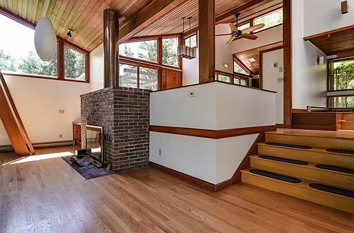 A true departure from the ordinary this fabulous custom designed Contemporary home offers an incredible opportunity to enjoy bright open spaces open to a tranquil and private setting! Cathedral ceilings and towering windows with views will capture your desire to relax with nature and enjoy an open concept lifestyle. Set well off the road and nestled off a private way this property offers plenty of room for gardening and play. The versatile floor plan provides many surprises and options depending on your particular needs. There is one level living on the main floor and a separate bedroom and full bath on the lower level perfect for au pair or guests. Gleaming hardwood floors, cathedral ceilings, skylights, fireplace and spacious loft perfect for office or just relaxing space. This one of a kind home is a rare find. A delightful retreat in a very convenient commuting location!!