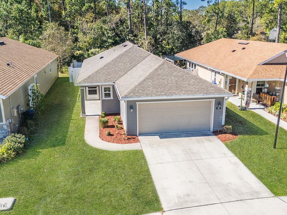 Discover the perfect blend of comfort, convenience, & charm of this 3 Bedroom, 2 Bath home in St. Augustine. Tucked away in a quiet, one-street neighborhood within the St. Augustine Shores area, this 2020 built home is beautifully maintained and offers easy access to historic downtown St. Augustine, the beach, shopping, dining, and top-rated schools. Step inside to find fresh interior paint, brand-new carpet, and stylish wood-look plank flooring in main areas. The bright, open layout is ideal for entertaining or relaxing, featuring plenty of natural light and move-in-ready finishes. Large kitchen with stainless appliances & bar. Enjoy a peaceful lifestyle with access to a community swimming pool and clubhouse, while benefiting from NO CDD fees and low HOA dues. Whether you're a first-time buyer, snowbird, or looking to downsize near the coast, this charming home checks every box. Low maintenance, convenient location & turnkey. Live the St. Augustine lifestyle you've been dreaming of!