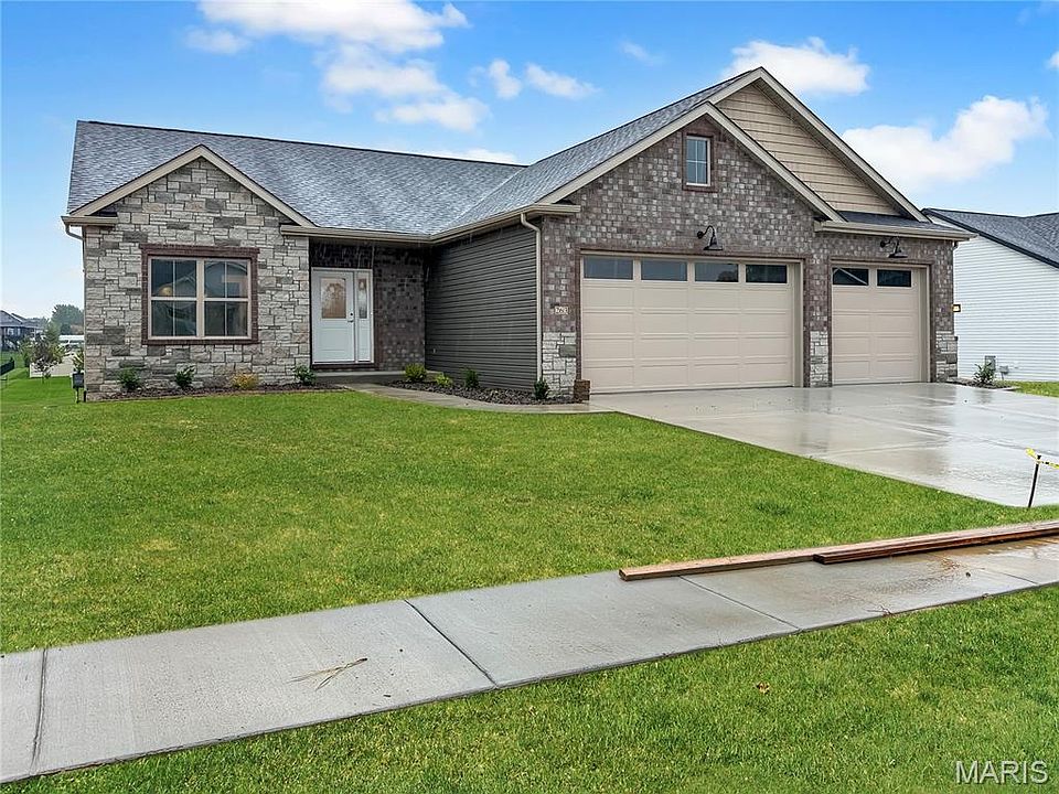 Take advantage of your opportunity to own a well-built 4 BEDROOM, 3 FULL BATH home in the sought after Meridian Oaks community. The main-level features an open floorplan design, allowing everyone to be part of the conversation, a large living room with gas fireplace and natural light, an upgraded kitchen with white cabinetry, center island and solid-surface countertops. This is a split-bedroom design, allowing more privacy for the primary bedroom which features a walk-in closet and luxurious bathroom with tiled shower and dual vanities. The WALK-OUT lower-level features a large family room, 4th bedroom and 3rd full bath. The 3-car garage offers a BUMP-OUT which is perfect for keeping lawn equipment or those big toys out of the way. Enjoy the outdoors from the covered deck. This home is located in the Edwardsville School District and is near dining, shopping and more. THE PHOTOS OF A COMPLETED LISTING ARE PROVIDED FOR DEMONSTRATIVE PURPOSES ONLY AND FINISHES WILL VARY...
