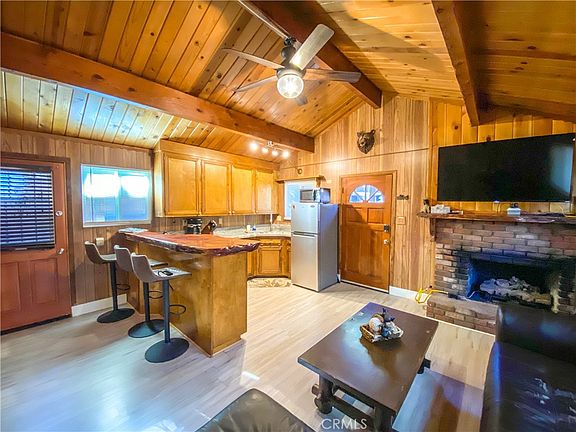A Fully Furnished Cabin w/ Fireplace, Bar, Full Kitchen, Indoor Laundry, Jacuzzi, Firepit, BBQ, Rear Yard Storage Bldg. Walking distance to the Huge Newly Remodeled Sugarloaf Park & Fire Station. Very Active Seasoned AirBnB Property with over 218 Reviews and 4.91 Stars! This property comes fully Furnished. As Is Sale. Seeking Cash Buyer w/ a Quick COE. Buyer to assume existing Airbnb Calendar / Seller team to assist w/ management for seamless transfer.
