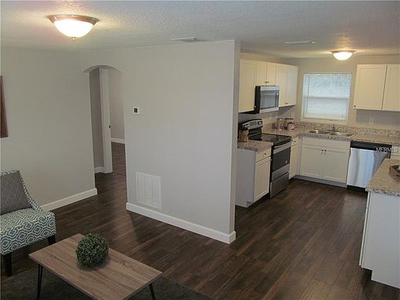 Welcome Home! The moment you step inside, you will be greeted with beautiful hand-scraped laminate flooring, fresh paint, and a stunning kitchen showcasing white shaker cabinetry and new stainless steel appliances. You will certainly enjoy the bright bedrooms, oversized laundry room and gorgeously designed bathroom, complete with a white subway tiled shower. The garage will provide you with plenty of room for storage, while the extra-large driveway offers ample room for parking your boat or other toys! As a bonus, with no side neighbors and a huge yard, you will appreciate the privacy this property provides. You can make this modern, bright and clean home yours today!