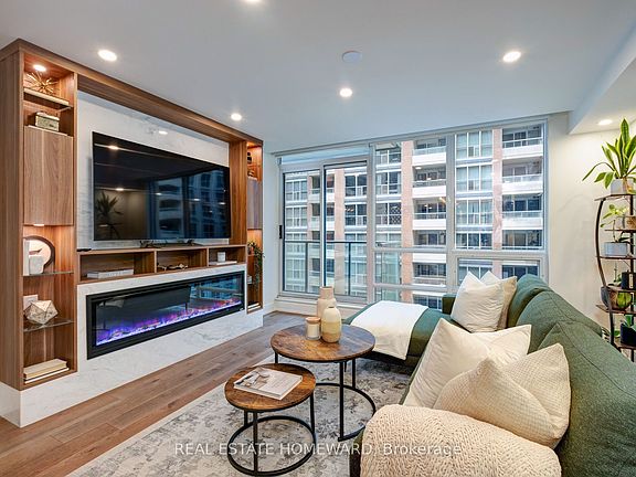 Your Wait is Over, Your Dream Condo Suite has arrived! Gorgeous 848 Sq Ft 2 Bedroom W/ Parking.This Unit was Gutted to the Concrete in 2021. Totally Redesigned Everything from Floor to Ceiling has Been Done Over $200,000 Spent to Create this Beauty. Hardwood Flooring, High Ceilings, Pot Lights Throughout , B/I Shelves Throughout, Quartz Counters in Kitchen & Bathroom, Both Bedrooms Have B/I Closets & Night Tables, Prime Bedroom has Wall to Wall Closets W/ Organizers, 2nd Bedroom has a B/I Desk, B/I Workplace In the Dining Area, Kitchen Has all S/S Appliances including Oversize Executive Refrigerator and a Center Island, LR has a Electric Fireplace, Bathroom was Redesigned for a Larger Space with B/I Shelves, B/I Large Vanity with Double Sinks and a Towel Warmer, Living Room & Prime Bdrm Have Remote Control Window Blinds Prime Bdrm has Double Blinds One is a Blackout Blind and So Much More. Maintenance Fees Include all Utilities Except Internet & Cable. Don't Wait! you do Not Want to Lose Out on This Exceptional Beauty!!