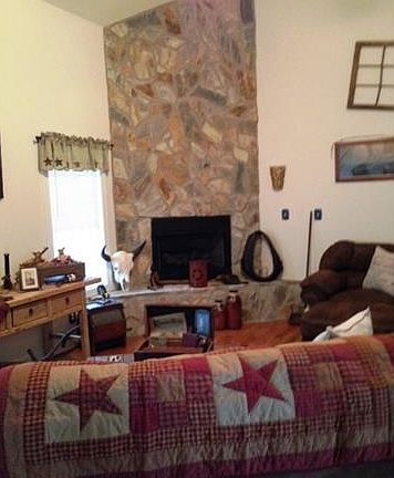 Beautiful ranch home with split floor plan, 3 bedrooms, 2 full baths, living room (Great Room) with Hardwood floors, stone front gas fireplace and vaulted ceilings. Master bath has jetted tub, stand up shower with tile floor and double vanity. Attached two car garage.