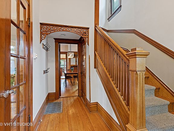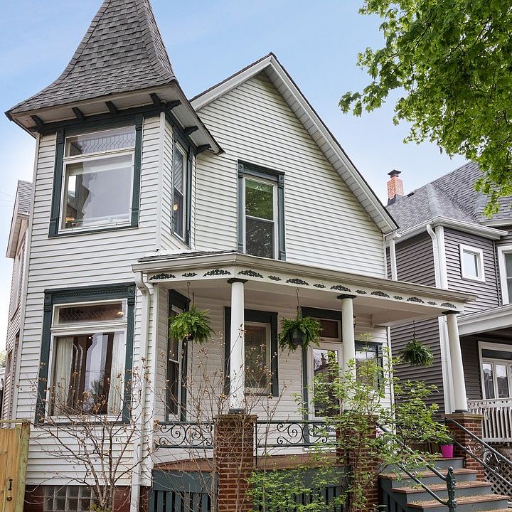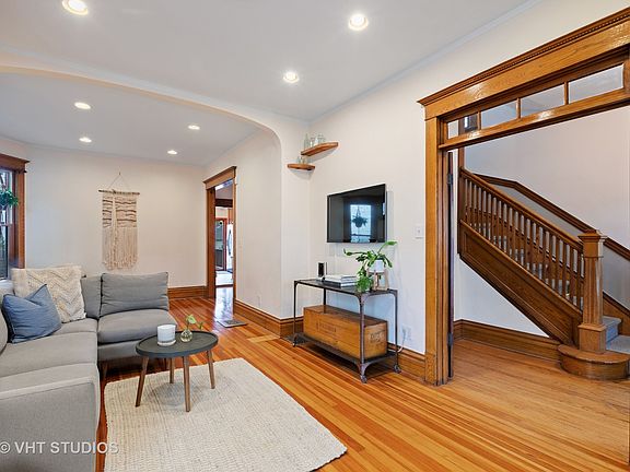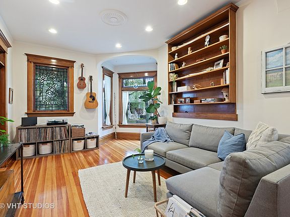 Logan Square Victorian on OVERSIZED lot. Original detailing throughout the home: Leaded glass windows, built-in hutch, french doors, wood molding and decorative millwork. The kitchen, baths and mechanicals all have been updated. The kitchen features stainless appliances, stone counters and 42" cabinetry. Newer baths. The furnace was replaced in 2018. There are three bedrooms located on the 2nd floor. One bedroom on the main level. Finished lower lever with rec. room, office/studio space and tons of storage. Large back deck and front porch were just repaired and refinished. Landscaped back yard and 2 -car garage complete this wonderful home. Great location: walking distance to Blue line trains, restaurants, near Metra and highway....