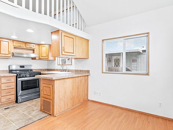 This delightful 1 bedroom and 1 bath + loft single family Manufactured Home features an abundance of natural light and tasteful finishes inside a quiet community. Bright and cheery space, the house has vaulted ceiling with lots of windows. The kitchen includes range, disposal and refrigerator. Two car off street parking. Coin laundry center on premises.