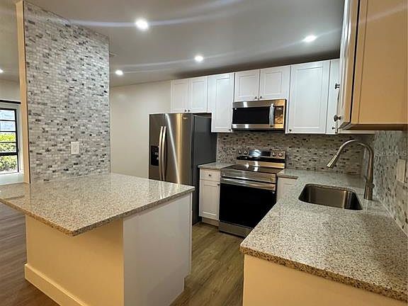Completely Remodeled one bedroom and one bathroom retreat by Lake Bivens South. This condo apartment welcomes you with an open-concept layout, creating an inviting flow between the kitchen, living, and dining areas—ideal for both entertaining and relaxing. The brand-new HVAC and water heater ensure energy-efficient comfort year-round. Gourmet-style kitchen boasts sleek stainless steel appliances, granite countertops, abundant cabinetry, and a luxe backsplash. Sliding door leading out to a bright sunroom—perfect for morning coffee or casual lounging. The bedroom features a generous walk-in closet, while the stylish bathroom offers updated fixtures and finishes. There is a dedicated laundry room complete with washer/dryer and extra storage cabinets. Durable vinyl flooring throughout adds both elegance and ease of maintenance. Step outside to enjoy the community’s waterfront amenities: take a dip in the pool, host gatherings under the covered pavilion, launch your kayak or canoe, and access the shared dock—just steps from your door. Located off SW 13th Street, close to Archer road and conveniently close to UF, Shands Hospital, Butler Plaza, and Celebration Pointe, this home is perfect for professionals or anyone seeking a peaceful retreat without sacrificing access to vibrant city life. Don’t miss the opportunity to make this turnkey gem yours.