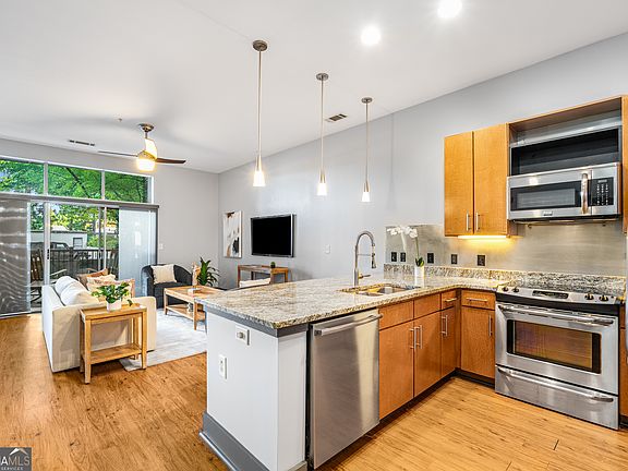 Don't miss this incredible opportunity to own an affordable, spacious condo in one of Metro Atlanta's most charming and walkable Intown communities - the City of Decatur. This beautifully maintained 1 bedroom, 1 bath unit offers 912 square feet of open-concept living, making it one of the larger one-bedroom floor plans in the complex. Plus, it includes two deeded parking spaces - a rarity for most one bedroom units! Features include fresh interior paint throughout, granite countertops, stainless steel appliances, oversized windows, and a private ground-level patio with peaceful views of mature trees and community amenities. Enjoy resort style living with access to a gated parking garage, pool with waterfall, fitness center, conference room, and an active clubhouse. Perfectly situated just 1/2 mile to MARTA, under 1 mile to Downtown Decatur, and minutes from Avondale Estates, you'll love being so close to top rated dining, shopping, and the new Publix at Sam's Crossing. Whether you're looking for your first home, a downsizing option, or a great rental investment, this Talley Street condo offers the ideal combination of modern comfort, unbeatable location, and vibrant community living.
