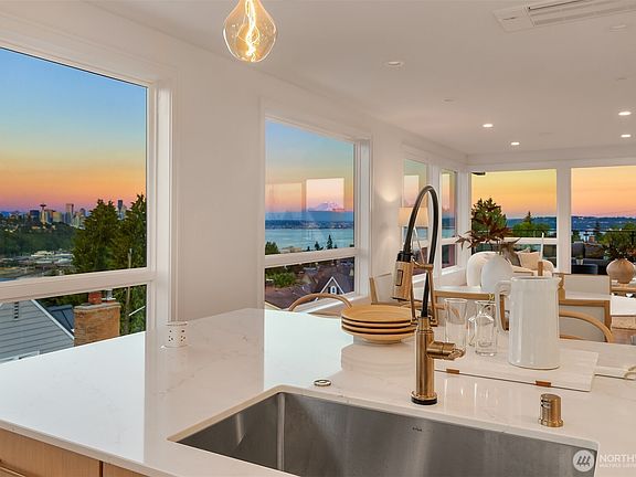 Rarely does a new construction, truly great view home become available with this many outstanding features at any price point! Designed for multiple generation living, 3 view floors are all above ground and served by elevator. Top floor great room leads to expansive outdoor deck, with Mt. Rainier, Elliot Bay & city views. Even the kitchen has a spectacular view! Imagine having a cup of coffee as the sun comes up over the mountain. Later during the day, walk to Magnolia Village before heading out for a quick 5-minute drive to Palisades, the Seattle waterfront or an event at Seattle Center! Finish the day in the oversized primary bedroom sitting room area after a bubble bath in the stand-alone tub. First floor guest suite w/living area.