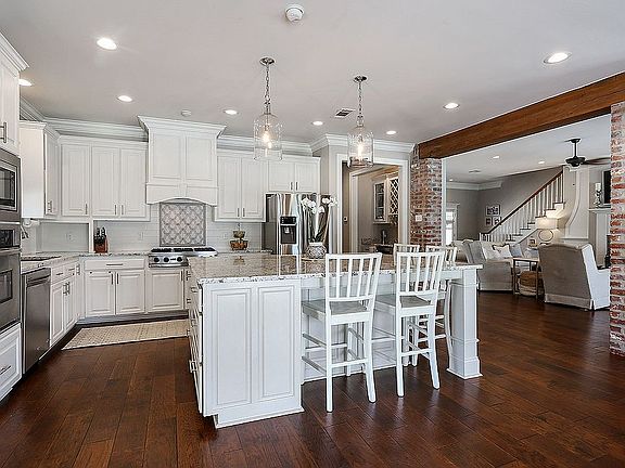 This custom built 4 bedroom, 3 full bath home with office/study has it all and did NOT Flood in 2016! for more info or to schedule a showing. This beautiful home sits on .84 acres in a cul-de-sac and offers luxury details throughout! The front entry has beautiful French doors that open up to a large foyer and into an inviting family room featuring large brick and cypress beam openings. This home has an open floorplan that is perfect for any occasion ! The kitchen and breakfast area are great for entertaining with newly renovated counter tops featuring a 5’ x 6’ granite island and Viking cooktop. Formal dining room is big enough for the entire family to sit and enjoy their time together. The large entertainment room has plenty of space for your pool table, along with couches and big screen TV. This home offers gorgeous wood flooring throughout. The master suite offers a sunroom with 9’ vanity area looking out towards the pool/lake area giving this room a grand feel! Enjoy your evenings outside in the beautiful backyard with gorgeous gunite pool overlooking cypress bottom lake. This home also features an insulated 22x40 RV Garage, Natural Gas Generator that powers the entire home, rain bird underground irrigation, beautiful landscape and much much more!!