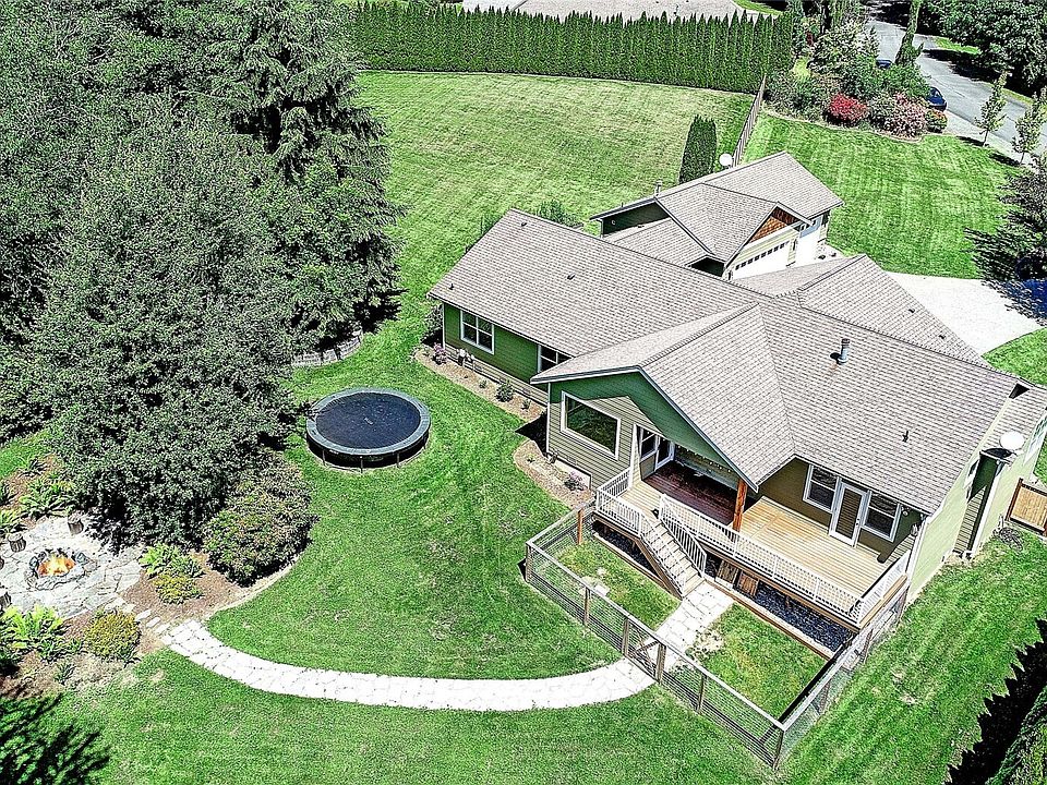 Welcome to The Bryant Estates! This beautifully maintained 2006 rambler offers 2,306 sq ft of living space on 1.13 acres in a quiet cul-de-sac. Inside features 3 bedrooms, 2.5 bathrooms, a formal dining room w/ tray ceiling, spacious living area, hardwood floors, kitchen w/ granite countertops, stainless steel appliances, and a breakfast nook. French doors open to a versatile den; the primary suite includes a 5-piece bath + patio access. Extras include a 3-car garage, generator-ready wiring, water softener, A/C, covered deck w/heat, large backyard, NEW fence, fire pit, garden space, sprinkler system, and invisible fencing for pets. NEW exterior paint 2025, NEW deck, Backyard has invisible fence to property line. Close to I-5 for commuters!