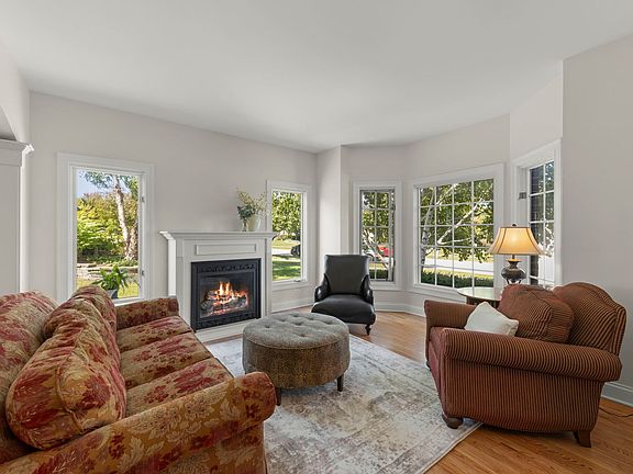 Floor-to-ceiling fireplaceStately brick-and-stone facadeFinished basementThoughtfully designed living spaceCircular driveSoaring ceilingsArchitectural interest