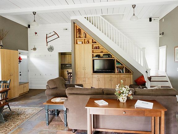 Welcome to your perfect retreat! This beautiful turnkey 2-bedroom, 2-bathroom barndominium, set on 3 peaceful acres southeast of Webster, offers both tranquility and modern comforts. Overlooking a pong, this year-round home boasts an open floor plan with 12-foot ceilings and slate flooring throughout the main level. The heart of the home is its gorgeous kitchen, featuring stainless appliances and plenty of space for cooking and entertaining. The main floor also includes and oversized family room/dining room and a dedicated laundry area just off the kitchen. Two spacious bedrooms upstairs with rounded barn ceiling, bathroom and hardwood floors. A large open yard with surrounding heavy pine trees and a large firepit area, perfect for hosting family and friends. Matching storage sheds holds all your yard needs. The property also included an electrical pole with two RV connections. Currently, the home operates as a successful vacation rental with repeat guests and a 5-star rating.