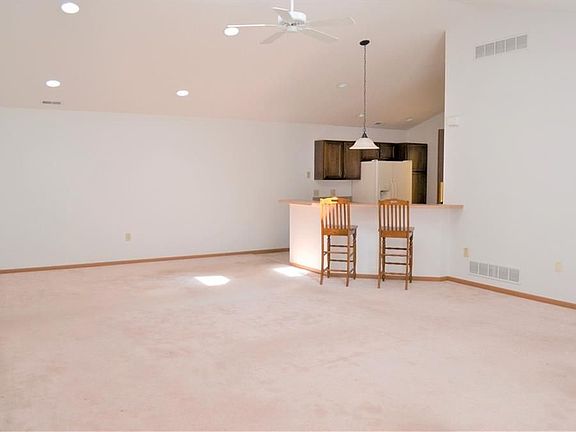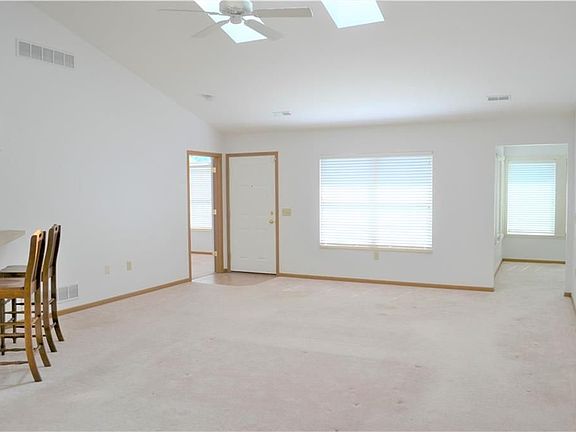Hard to find condo with year round sun room! Desirable floor plan with open concept and split bedroom design. Spacious living room/dining area with cathedral ceiling, sky lights and a ceiling fan. The kitchen has nice maple cabinetry, breakfast bar, pantry cupboard and all appliances included. Access to the 2 car garage is through the convenient laundry room off the kitchen. The master bedroom has a walk in closet and full bathroom with step in shower. The 2nd bedroom also has a walk in closet and is close to the 2nd full bathroom. You'll love the all season sun room! Walls have been freshly painted, carpets cleaned and is move in ready!
