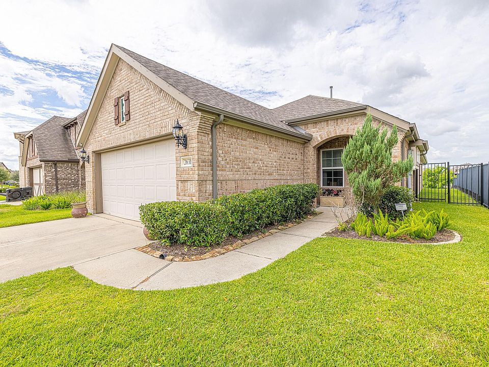 Welcome to your dream home in the highly sought-after Lago Mar community in Texas City! This stunning one-story home features 4 spacious bedrooms and 2 full baths with an open-concept floor plan. Expansive windows fill the home with natural light, highlighting the sleek finishes and thoughtful layout. The heart of the home boasts a chef-inspired kitchen with top-rated appliances, while the built-in home humidifier adds comfort and efficiency year-round. Relax in your backyard oasis where you’ll enjoy serene views of the sparkling lake and fountain, the perfect backdrop for morning coffee or evening gatherings. Living in Lago Mar means enjoying resort-style amenities every day. Take advantage of the famous crystal-clear lagoon, community clubhouse with bar and grill, multiple parks, state-of-the-art fitness centers, and so much more. This home offers the perfect blend of comfort, luxury, and community living. Don’t miss the opportunity to own a piece of paradise in Lago Mar!