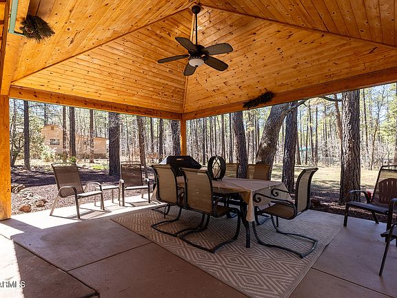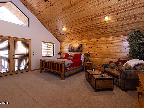 Your Dream Mountain Retreat Awaits! In the desirable gated community of White Mountain Summer homes! Nestled on a stunning ¾-acre tall pine lot, this log-sided home embodies the warmth and elegance of mountain resort living, with its exquisite wood details and natural charm. The home features rich wood accents throughout, creating a seamless connection to its forested surroundings. The soaring ceilings showcase exposed timber beams that add both character and grandeur to the living spaces, while the warm-toned wood flooring provides a cozy and inviting feel underfoot. The craftsmanship shines in every corner, from the beautifully paneled walls in the great room to the refined wood trim that frames windows and doors. Thoughtful wood elements, paired with the towering rock fireplace and expansive windows, perfectly complement the beauty of the outdoors, blending luxury with rustic charm.