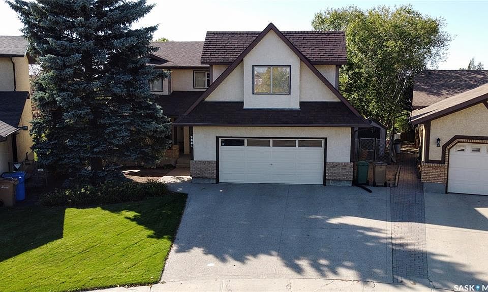 Welcome to 2631 Crocus Drive in the desirable Wood Meadows neighborhood close to WF Ready school and park, St. Marguerite School, and a short drive away from all the shopping amenities Regina’s East End has. This original owner, 1991 built, 2588 square foot, 5 bedroom, 4 bathroom, 2 story house sits on a massive 8840 sqft irregular lot backing a walking path. The front yard has a lawn, pine tree, greenery and the double concrete driveway that leads to the 24’x24’ double attached, insulated garage and covered front porch. There are 18 solar panels on the roof! The backyard has an endless lawn, trees and shrubs, a patio with an included pergola, a garden, a fenced area and a shed! You enter this home into the foyer that has a coat closet. Next is the family room. Walking through french doors you enter into the large dining room that is surrounded by large windows that overlook the beautiful green space. The updated kitchen is next with a window overlooking the back yard, cappuccino maple cabinets, granite counter tops and the included fridge, stove, microwave hood fan and built-in dishwasher are all included. Next is the living room with carpet flooring, a bay window, and a beautiful electric fireplace. The main floor is finished off with a 2pc bathroom, the door to the garage and a laundry room with a sink and cabinetry. Upstairs are 2 good sized bedrooms with ample closet space, the main 4pc bathroom with double sinks, another bedroom, and then the huge bonus room. The 2nd floor is completed with a large primary bedroom with a walk-in closet as well as a 4pc ensuite bathroom featuring a jet tub. The finished basement starts out with a large rec room, another large bedroom with a walk in closet and is finished off with a 3pc bathroom and the utility room that has 2 high efficiency furnaces (2015), the owned gas water heater (2024) and brand new water softener (2025). This house has also received updated windows throughout, and has central air conditioning!