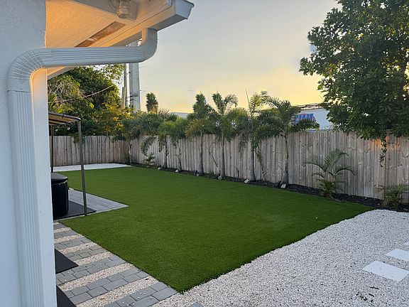 Renovated backyard with synthetic grass, great for kids and low-maintenance living