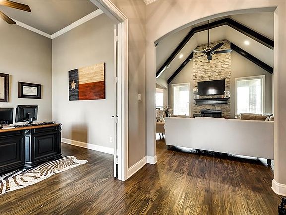 Custom home with lots of bells and whistles, Open Custom kitchen with granite, custom cabinets, stainless appliances, overlooks large family room and breakfast area to backyard. Stacked stone fireplace, hand scraped hardwood floors, vaulted ceiling. Master suite features large bedroom, built in soaking tub, walk in shower, his and her vanities. The home also features a study, mud room, second living area, 2 full baths and a total of 4 bedrooms. Enjoy the exterior lawn, full sprinklers, covered back porch and a grass lawn. The Plainview Manor subdivision is a desired location with a limited number of homes.