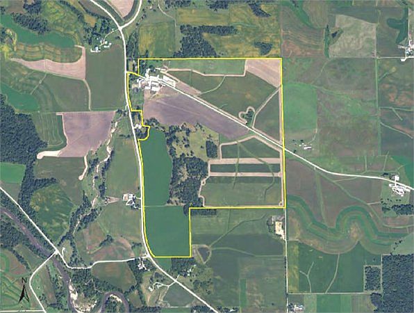 Great Mix of Cropland, Pasture and Extensive Livestock Buildings!391 acres, m/l, with 280.75 crop acres and CSR2 of 57.3 (CSR 63.0).Farm includes a mixture of rolling cropland, pasture and extensive livestock buildings.Building Description(s)Two traditional livestock barns and three free-stall dairy barns that are in good condition.Three loafing sheds with concrete feed floors.7,500 SF Commodity Building/Shop built in 2009. Has 2,500 SF heated with a concrete floor.Dairy parlor built in 2000 - not currently in use.Three grain bins with 29,000 Bu. capacity.Three BR bunkhouse with kitchen, eating area, and 1 full BA.2-story brick house built in 1872 with 4 BR/1BA. Kitchen, plumbing and electrical have all been updated.Mobile home with two-stall detached garage located in NW portion of the farm.