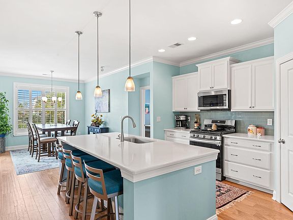 - Features: Breakfast Bar, Kitchen Island, Pantry, Stainless Steel Appliances, Solid Surface Counters