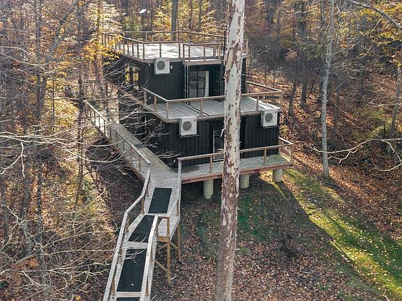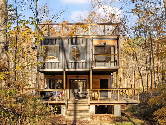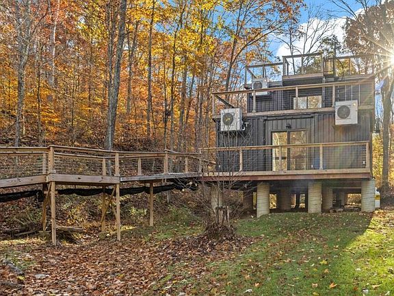 Outside allows for just under 7 wooded acres, a rooftop deck for star gazing, and a wrap around lower deck for entertaining. Inside, the home features a spacious light filled layout with streamlined modern finishes. From the kitchen to the stairway, every detail has been thoughtfully curated to feel modern and fresh. Lower level provides open kitchen, living room, with half bath, a main bedroom with walk in shower and dual sinks. Up the stairs provides an additional large entertaining space, two additional bedrooms, and a full bath. Every room offers a connection to nature though bright windows and open doorways. There is so much to this unique home to experience, with even more in the surrounding area from a new winery and general store just a mile away, ash cave within a 10 minute drive. The excitement of the hocking hills await!