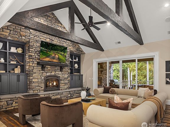 Black Nugget Estate has been beautifully updated, showcasing exceptional craftsmanship and attention to detail throughout. Spanning over 6,300 sq. ft., this custom, gated home offers 4 spacious ensuite bedrooms, 5 bathrooms and a thoughtfully designed floor plan. The chef’s kitchen features double islands and high end appliances while seamlessly connecting to beautiful outdoor living space. The romantic primary suite is conveniently located on the main level, with 3 additional guest rooms—2 up and 1 on the lower level. Theater, Game Room with full bar, sauna, golf simulator, outdoor sport court, 5 car garage and so much more. Tucked away in one of Issaquah’s most private locations, a rare opportunity for buyers seeking resort style luxury.