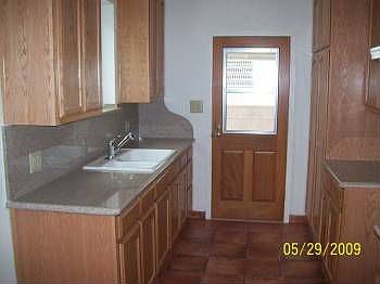 Has a two car garage nice green grass with trees in the back for shade. Nice patio in the back as well.