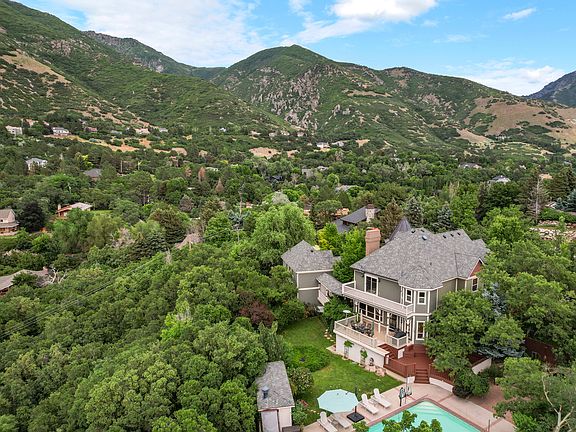 There are houses, and then there are experiences. This Victorian masterpiece, full of built-in antiques, in Uintah Highlands feels like something out of a storybook, delivering a lifestyle of beauty, privacy, and enchantment that's impossible to replicate. Tucked away on a secluded, wooded lot, this home captures sweeping mountain and valley views while wrapping you in timeless charm. From the moment you step onto the iconic wrap-around porch, you'll feel the magic. The recently remodeled kitchen, with its perfect blend of modern sophistication and classic elegance, sets the tone for a home that is equally suited for quiet mornings and unforgettable gatherings. The backyard is a private resort, alive with wonder: a sparkling swimming pool for sun-soaked afternoons, a koi pond for peaceful reflection, a built-in hot tub for starlit evenings, and a gas firepit for cozy nights with friends and family. A quaint pool house with a bath (not listed in the room count) adds convenience and character, while the bonus level (listed as level 3) above the 4-car garage offers endless possibilities, a creative studio, guest retreat, or home gym, just to name a few. Every corner of this home tells a story. Every detail, from its architecture to its secluded setting, speaks of craftsmanship, style, and soul. There's nothing cookie-cutter here, only the rare chance to own a home with a personality as vibrant and unique as the fairytales that inspired it. This is not just a place to live. It's a place to dream, a place to gather, and a place to create memories that last a lifetime.