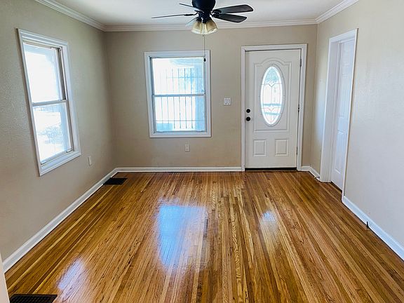 Beautiful single family home with 3 bedrooms, 1 bathroom, and a parking garage. The inside is beautiful with a remodeled kitchen, remodeled bathroom, refurbished hardwood floors, and a fresh coat of paint.