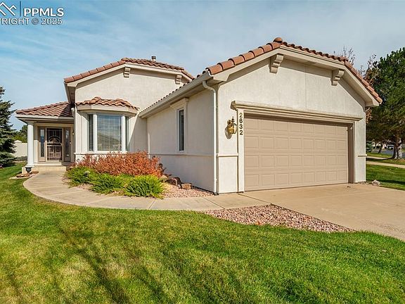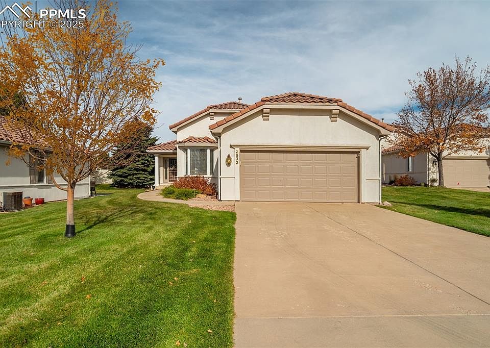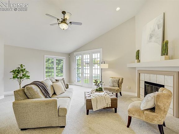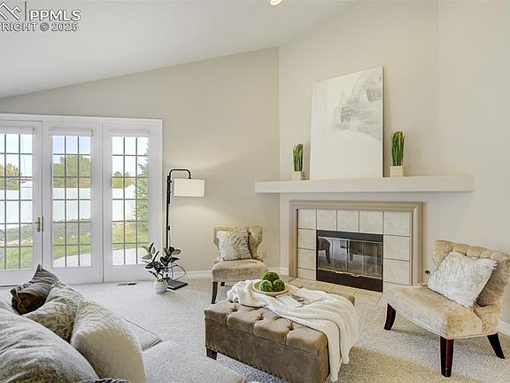 ***Luxury Low-Maintenance Living in a Gated Community*** Welcome to this stunning patio home, nestled within a secure, gated community offering an effortless, low-maintenance lifestyle. This gem provides the perfect blend of comfort and style, built with lasting quality thanks to its sturdy 2x6 construction and pre-wiring for security. The interior showcases recent upgrades, including brand-new carpet and freshly refinished hardwood flooring on the main level. An inviting open-concept floor plan is perfect for relaxing and entertaining. The cozy living room features a gas fireplace and vaulted ceilings, creating a warm atmosphere. Elegant French doors lead out to your private backyard oasis. The gourmet kitchen is a chef's delight, boasting stainless steel appliances, ample storage, a breakfast bar, and spectacular views of Pikes Peak right from the windows! The spacious master suite is a true retreat, complete with a luxurious 5-piece en-suite bath (featuring new LVP flooring) and private patio access. Two additional well-appointed bedrooms offer versatility and space. The finished basement is an entertainer’s paradise. It features a dedicated media room with a wet bar and a secondary gas fireplace—perfect for movie nights. A large, versatile flex space is ready to be customized as a home gym, office, or hobby room. Outside, the charming patio, framed by mature trees and a retaining wall, offers a peaceful and secluded escape. Don't miss this opportunity to live the good life in this exceptional, quality-built home!