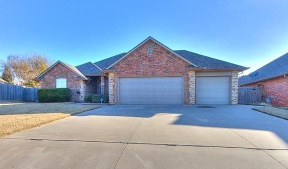Looking for space, comfort, and functionality in this custom built beautifully maintained one owner home. 4 bedrooms 2 bathrooms located in the heart of Moore. This home features a beautiful office with wood floors and built in bookshelves. Open-concept layout with ceramic tile throughout, new granite countertops, a gas log fireplace. Large primary bedroom with a tiled shower, separate Jetta tub, granite countertops and plenty of storage with a huge walk-in closet. All interior walls and garage are insulated. Roof and whole home guttering were replaced in 2023. Backyard is fully fenced, large, covered patio with ceiling fan and large storage building. The oversized 3 car garage has a pass through for more versatility. The neighborhood has a community park and pool. Owner/Agent #159547