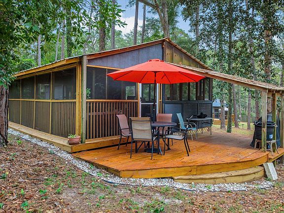 An entertainer or nature lover's DREAM HOME!!! Do not miss this centrally located home on ONE ACRE with an amazing PARTY PALACE in the back yard!!! So many incredible features that are almost impossible to find. Located in the lovely & spacious Stonegate community just minutes from all the hot spots in town, this home has an enormous chef's kitchen with beautiful cabinetry, granite countertops & endless storage. With multiple living spaces, this allows opportunities for a home office, craft room or whatever you prefer! The laundry room is also quite large which can be an additional "flex" space. The home has been freshly painted on the exterior & most of the interior, brand new roof in 2023, HVAC 2019, water heater 2021, extensive land clearing, newer windows, plantation shutters, & other small updates. DO NOT MISS THE PARTY PALACE OUT BACK that can host epic football watch parties, hang outs, & just general personal relaxation with the screened in porch, games, fans, lights, & more! Bring in a ping pong table, set the music and you will never want to leave! Next to the palace is shed storage and back a little further on the property is a full workshop with electricity and MORE storage! Water is also available near the back shed for any additional add-ons you desire! There is even ANOTHER screened in porch directly off the house for early morning coffee sipping or a nice glass of wine in the evening. This home is truly one of a kind and has had heart poured into creating the amazing outdoor living spaces.
