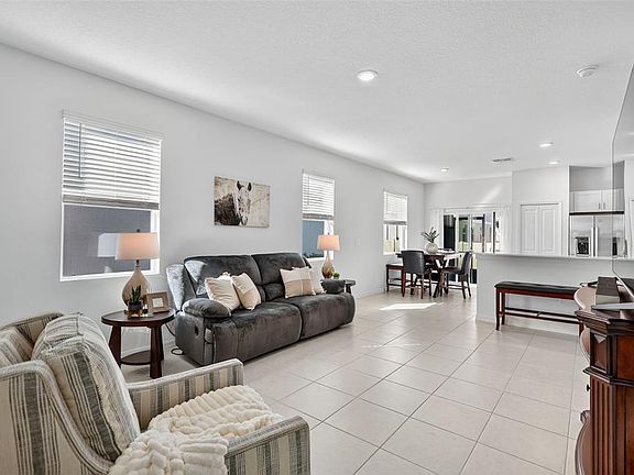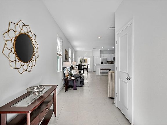 Welcome to a bright and inviting end-unit, two-story townhome offering modern comfort, thoughtful design, and a convenient location. Built in 2025, this home features a welcoming foyer that leads into an open-concept living and dining area filled with natural light thanks to the extra windows only an end unit can provide. Sliding glass doors open to a screened-in lanai, ideal for morning coffee or evening relaxation. The stylish kitchen boasts brand-new 2025 appliances, quartz countertops, beautiful cabinetry with decorative hardware, a single-basin sink, bar seating for three, a spacious pantry, and abundant storage, while a convenient half bathroom downstairs is perfect for guests. A one-car garage adds everyday practicality. Upstairs, the expansive primary suite impresses with its generous size and large walk-in closet. The elegant en-suite bath offers double sinks, quartz counters, and a beautifully tiled shower. A versatile loft provides an ideal spot for a home office, media space, or lounge. The second bedroom also includes a walk-in closet and its own private en-suite bathroom with a tub and shower combo—perfect for guests or family. Residents enjoy a refreshing community pool with plenty of lounge space, and HOA dues include lawn maintenance, water, sewer, and internet for easy low-maintenance living. Located just minutes from shopping, dining, I-75, and stunning Gulf beaches, this home blends modern style with everyday convenience.